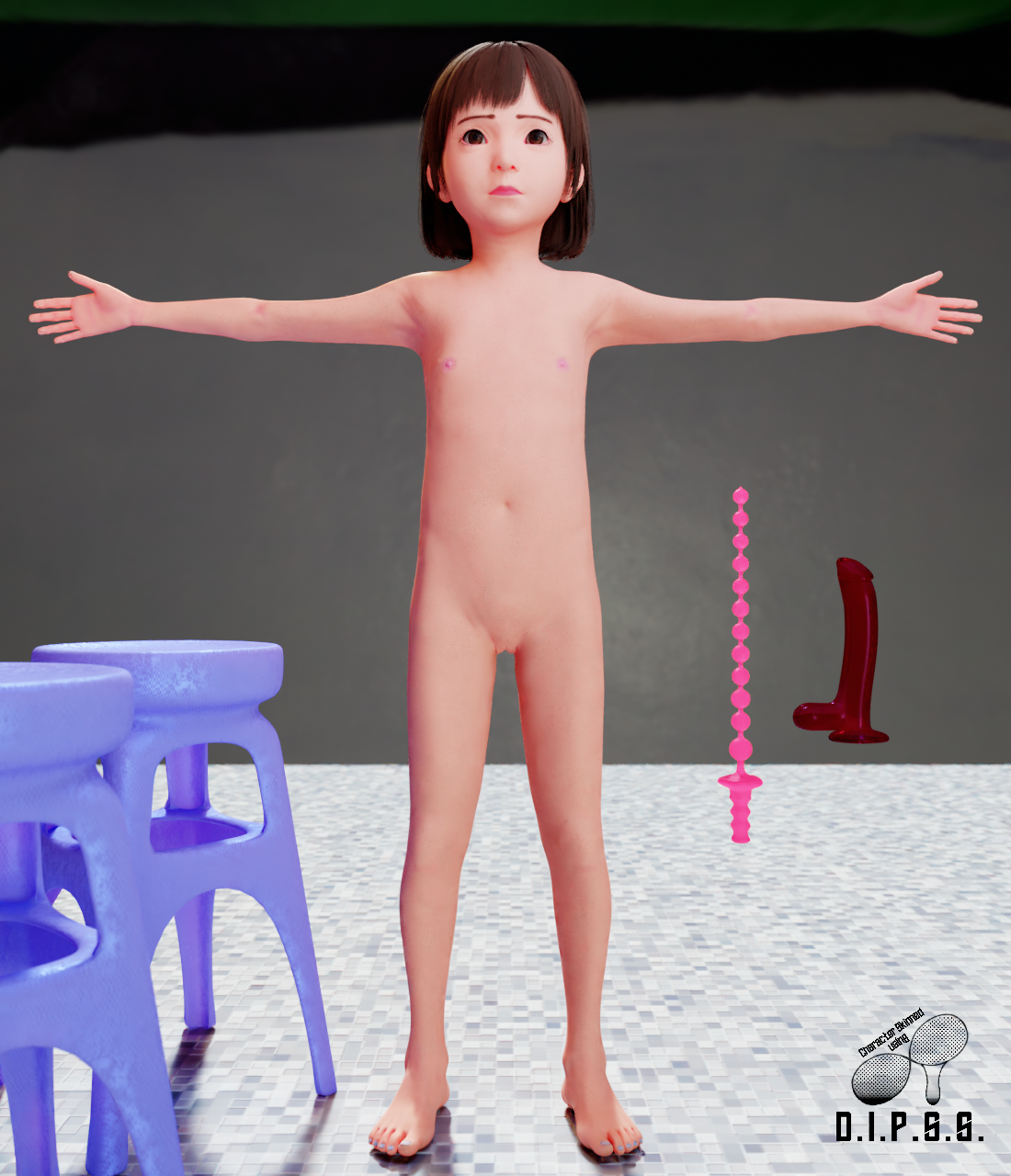 Also includes a simple procedural tile floor texture, a stool with a basic procedural plastic texture, and two toys with basic rubbery textures.